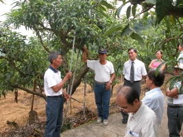 芒果是台灣栽培面積最大的水果,今年更被列入四大旗艦產品之一,為了加強農民對果園管理概念,提昇台灣芒果優質的形象,同時建立果園永續經營理念,本場特別邀集芒果生產鄉鎮農戶,於8月13日及8月17日分別在玉井鄉果樹產銷班第三十班與南化鄉果樹產銷班第二十班,各舉辦一場「芒果採果後果園田間管理作業講習會」,由黃山內場長親臨主持。